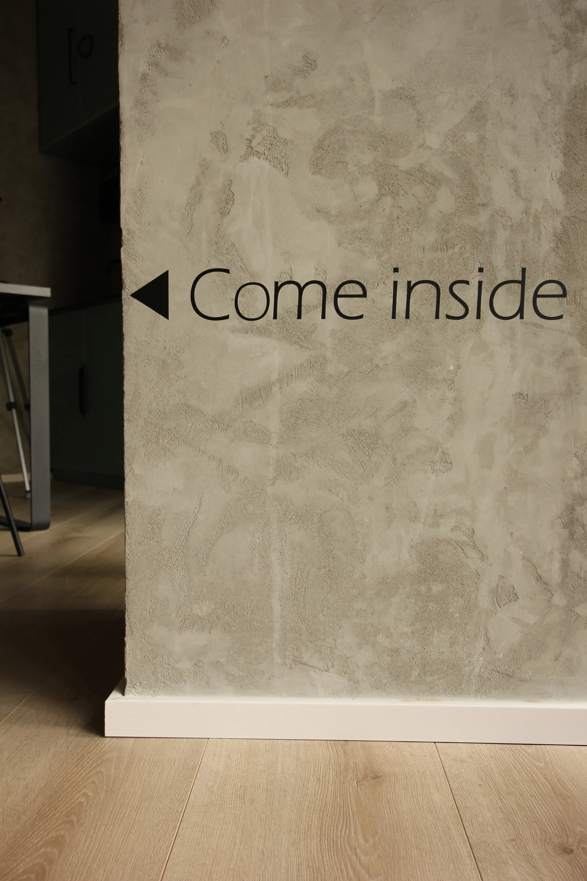 כל קירות החנות טוייחו בטיח ערבה למראה בטון חשוף