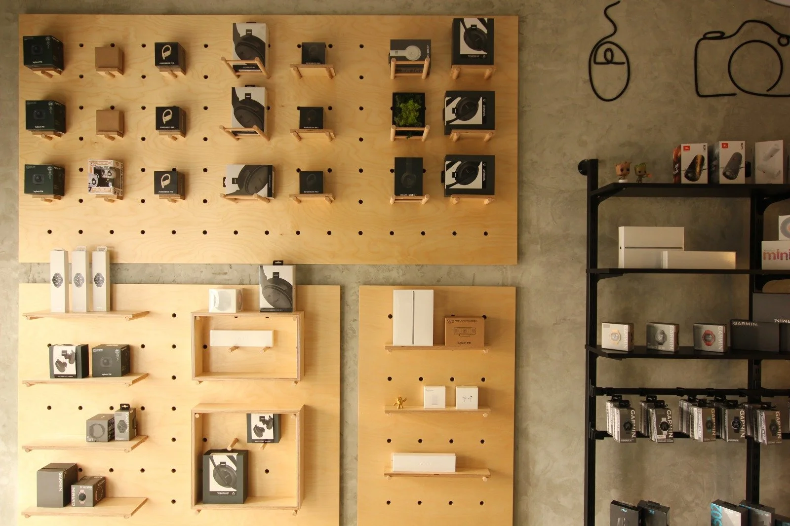 את קיר הדיספליי יצרנו מלוחות פג בורדס-לוחות עץ מחוררים