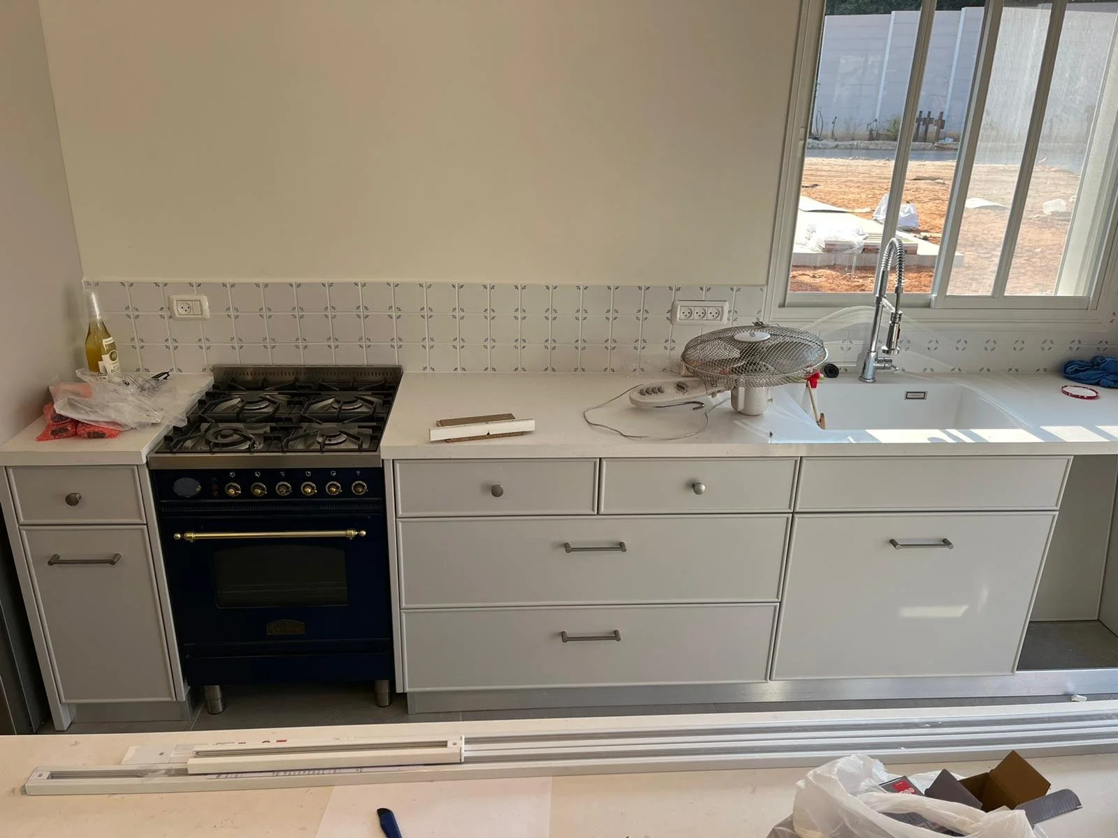 חצי קיר נצבע בגוון העדין של מטבחנו